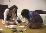 where both girls ash and spit on it, evening putting their cigarettes
