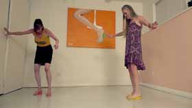 by squirting hair conditioner all over the floor. Now the girls are wobbling