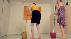 fall a dozen times, but they finally decide they should mop up the mess. The