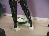 You end up cumming all over her sexy boots. Then, she gets in the shower
