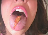 | The sensual and seductive Sister Superior is standing in front of you wearing a pink bikini. She opens her mouth wide and the camera moves in for an amazing shot of her hot moist mouth. Next to her, is a bowl of goldfish. She takes one out and puts it on her tongue. She shows it to the camera before slowly pulling it into her sexy warm mouth. She swallows him down then opens her mouth to show you that he's making his way down her lovely throat. The camera traces his journey down her neck to her stomach. She wonders what it must be like to get swallowed down and burned alive by her stomach acid. She sits down in a sexy pose showing off her stomach while she talks to the fish inside her belly. She then stands up and starts all over again until all the goldfish have been consumed. Then she lays down on the floor and shows off her perfect stomach. She continues to talk to the fish, asking them what it's like to be burned alive by her stomach acid. 40 min. |