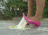 | Dahvia is a fairy traveling through the enchanted forest when her pretty white pumps step in some sticky goop. Unfazed, she snaps her fingers and changes into fresh white pumps only to find herself once again trapped in a hidden pile of gummy glue! Ivy is so excited to be taking photographs of her little niece when her sexy, black pumps get stuck in mounds of bubblegum some rotten kids must have left behind. Mistress Chloe finds her red, leather pumps stuck in goo left by her car door and Kenzi gets her tootsies helplessly stuck in a roach motel with nowhere to run! In the next segment, Kenzi unknowingly steps in some spilled glue and is desperate to flee from a giant spider in her room. Finally free, she runs outside wearing a new pair of pink pumps only to get stuck in a massive spider web and the sticky traps left behind. Chloe and her boyfriend have been miniaturized and find themselves trapped in another roach motel. Her boyfriend is a coward and leaves Chloe to fend for herself, screaming for help and trying to free her pretty, yellow boots from the clingy adhesive. Later she tries to escape from a serial killer but her silver flats get stuck firmly in place as he gets closer and closer. Will she be able to free herself in time?
