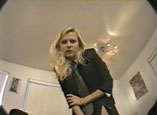 back to normal, and changes into a sexy vinyl vest, short shorts,