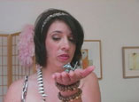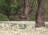 she sets you down to worship her giant feet. Edie takes her sandals off