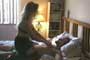 gets it??? Well, naturally, she ties him to her bed, and TICKLES it out of