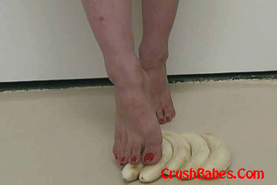 Jacqueline smashes a bunch of bananas under her bare feet, letting them ooze between her toes. 2 min. $3