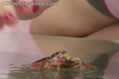 Parker presses a crawdad into pulp against the glass table, using her pretty red painted finger nails. 2 min. $3.